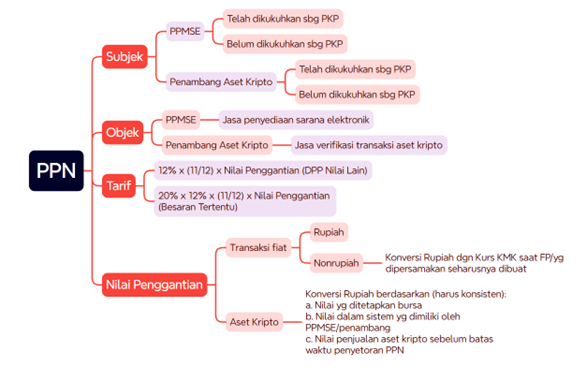 Berdasarkan PMK 50/2025, PPN hanya dikenai atas penyerahan jasa oleh Penyelenggara Perdagangan Melalui Sistem Elektronik (PPMSE) dan Penambang Aset Kripto (PAK) yang telah dikukuhkan sebagai Pengusaha Kena Pajak (PKP).