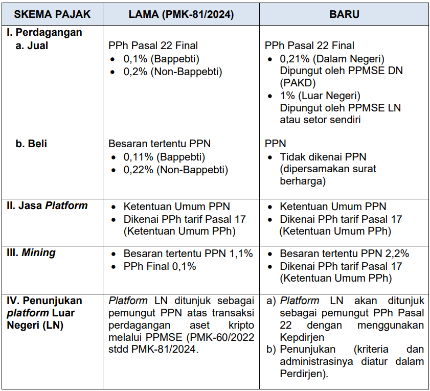 Tabel I – Perbandingan Skema Pajak Kripto pada PMK-81/2024 dengan PMK 50/2025